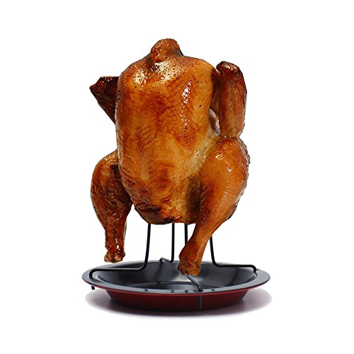 - This chicken roaster is not only good for solving poultry roast evenly from inside and out, but also can collect grease and juice in the bbq process.,from the effects of smoke flavor in the interior of the chickens, in order to achieve a better taste