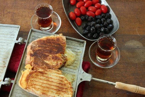 - Preparation : Chop the ingredients as seen in the photos Fry the sausages, you don't need to put oil in a frying pan as these sausages release enough fat Open the middle of the breads and spread tomato or pepper paste on both sides Put the ingredients in the middle of the breads; cheese, tomatoes, pickled cucumbers and cooked sausages Press the breads with your hands and push the ingredients sticking out inside Place the breads in a toast maker or a sandwich press It's ready when the cheese melts and serve it with ayran (preferably)